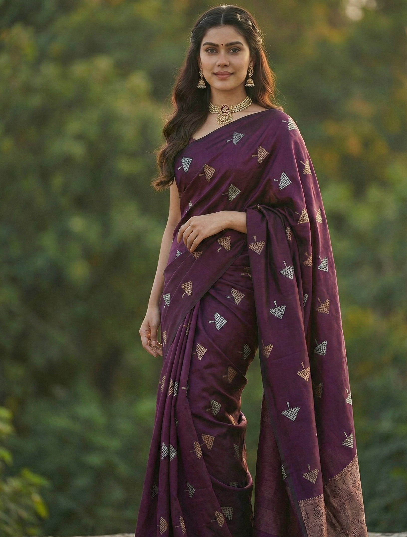 Featuring beautifully woven jacquard patterns, this saree offers a rich texture that elevates your look while keeping the drape lightweight and comfortable. Its smooth fall and premium finish enhance your silhouette, making it a must-have saree for women who love classy, statement-making ethnic wear. Pair it with gold, pearl or stone-studded jewelry to complete the perfect festive look.