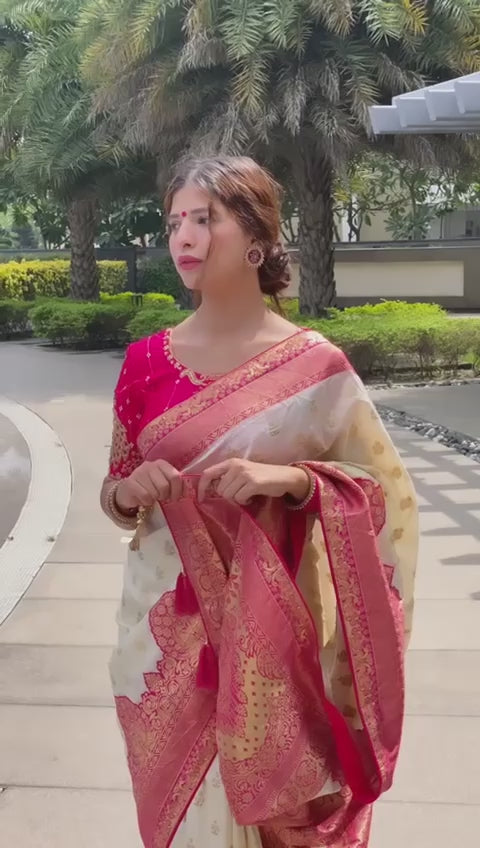 Every saree from our collection is thoughtfully designed to celebrate timeless Indian craftsmanship. We work with skilled artisans who bring generations of weaving traditions to life through rich textures, refined detailing and graceful drapes.
