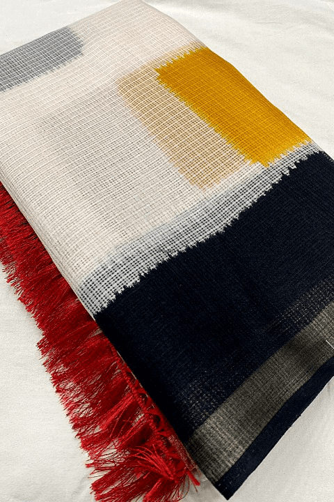 Printed Box Pure Linen Saree With Blouse
